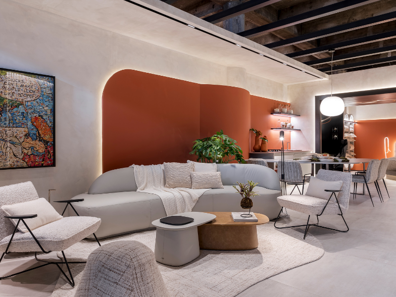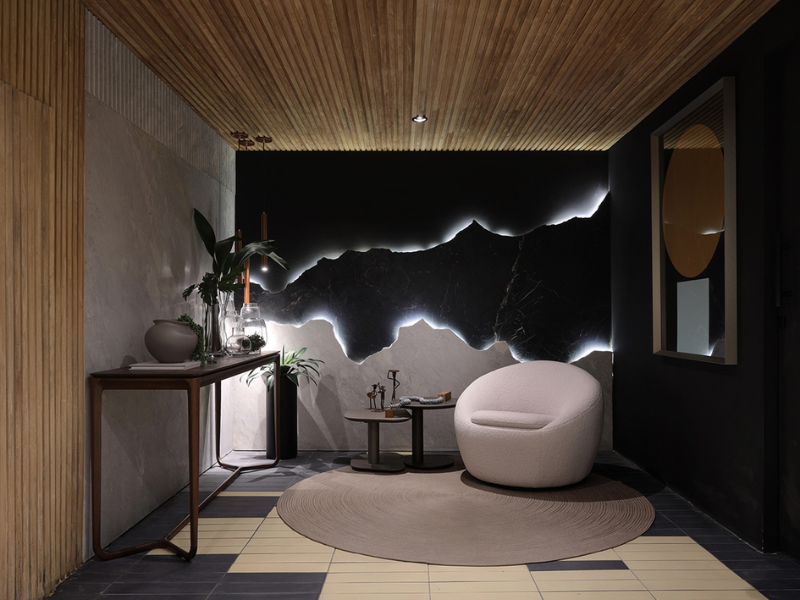 Na mostra, o formato curvilíneo marcou presença nos mais diversos elementos. Desde revestimentos até os itens decorativos. O mobiliário arredondado também está em alta e foi destaque em mesas de centro, sofás e móveis de apoio. Itens complementares, como luminárias decorativas, espelhos, tapetes e objetos também trouxeram o design curvo para a CASACOR 2023.