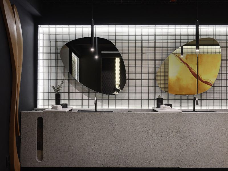 E até nos banheiros a tendência também se fez presente. No espaço Mediterrâneo em Mim, da arquiteta Hellen Pacheco Arquitetura e Design, as curvas se fizeram presente desde o arco na porta de entrada, até revestimentos, espelhos e mobiliário. As cubas com bordas arredondadas (Deca) também trazem formato orgânico para CASACOR 2023.