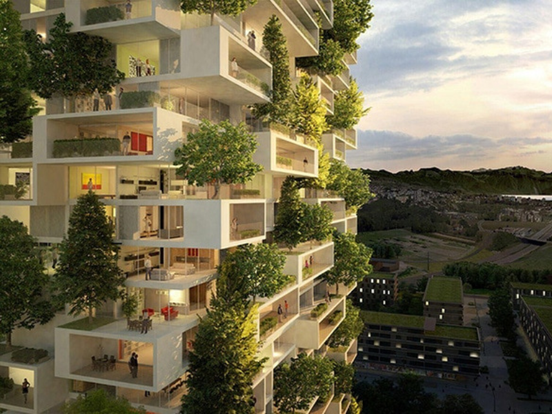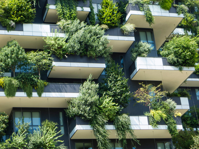 Com o objetivo de incorporar a biofilia na arquitetura dos edifícios, os arquitetos adotaram estratégias como a inclusão de vegetação nas fachadas. Isso engloba desde o uso de espécies trepadeiras até a implementação de sistemas de suporte para vegetação vertical. Além disso, os profissionais também investem na criação de terraços e jardins elevados em vários níveis, que oferecem espaços para o cultivo de plantas e árvores. Esses jardins proporcionam áreas de lazer, convivência e contato direto com a natureza para os ocupantes dos edifícios.